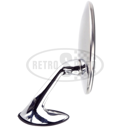 Spejlet er fremstillet i rustfrit stål og monteret på en forkromet, trykstøbt arm med kugleled ved spejlhovedet.